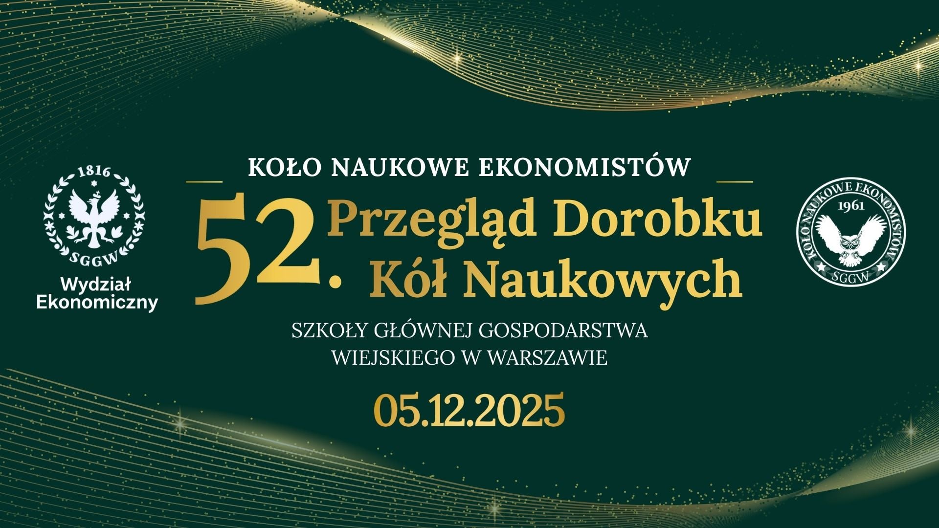 Serdecznie zapraszamy na organizowany przez Koło Naukowe Ekonomistów 52. Przegląd Dorobku Kół Naukowych SGGW